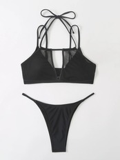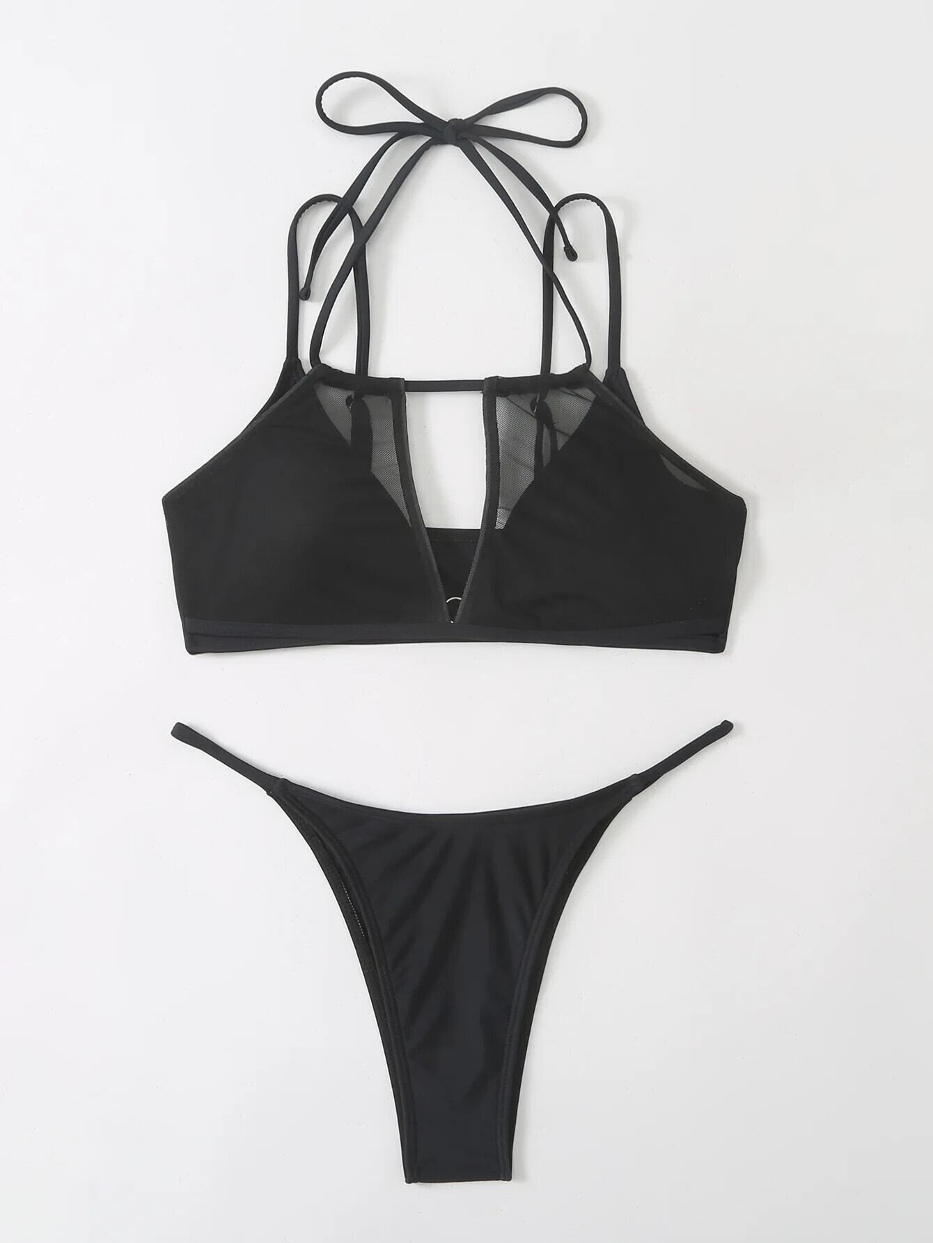 送料無料 セクシーなメッシュスプライシング 2 ピース水着女性 2024 中空アウトサスペンダービキニローウエスト Tバック背中の開いた水着夏のビーチウェア サマー 夏物 AE33232335586083154031