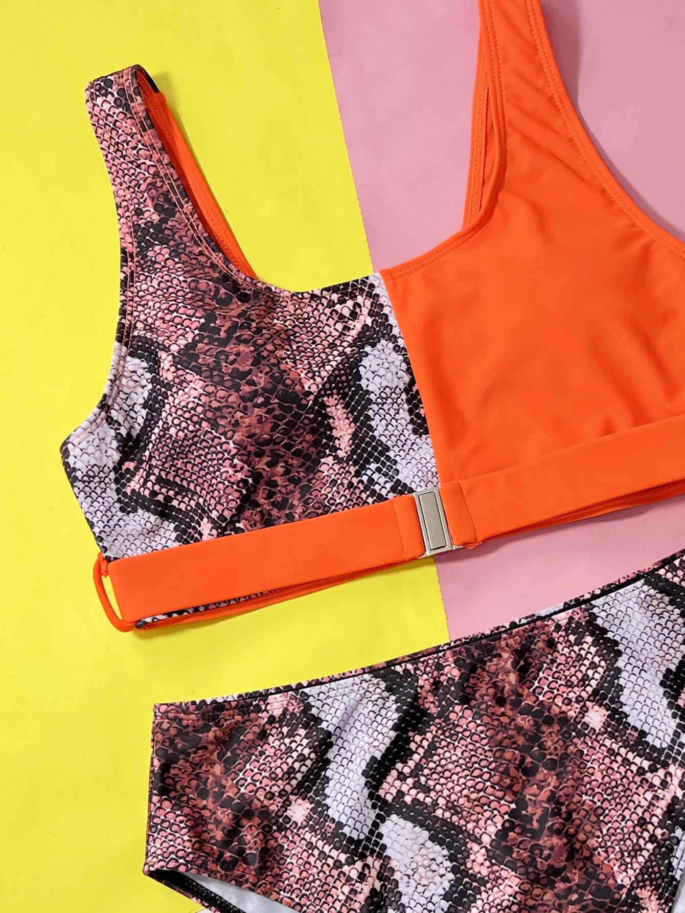 送料無料 2024 オレンジヒョウ柄ビキニタンキニ 2 ピースワーシト水着女性パッチワーク夏のビーチ休暇水着 サマー 夏物 AE33232335581243947836