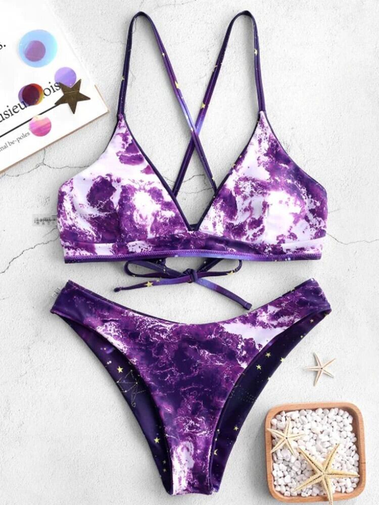 送料無料 星空プリント可逆ビキニセット女性のセクシーな Tバック二枚水着 2022 ガールサマービーチ水着マイクロ水着 夏物 AE33232335541428800315