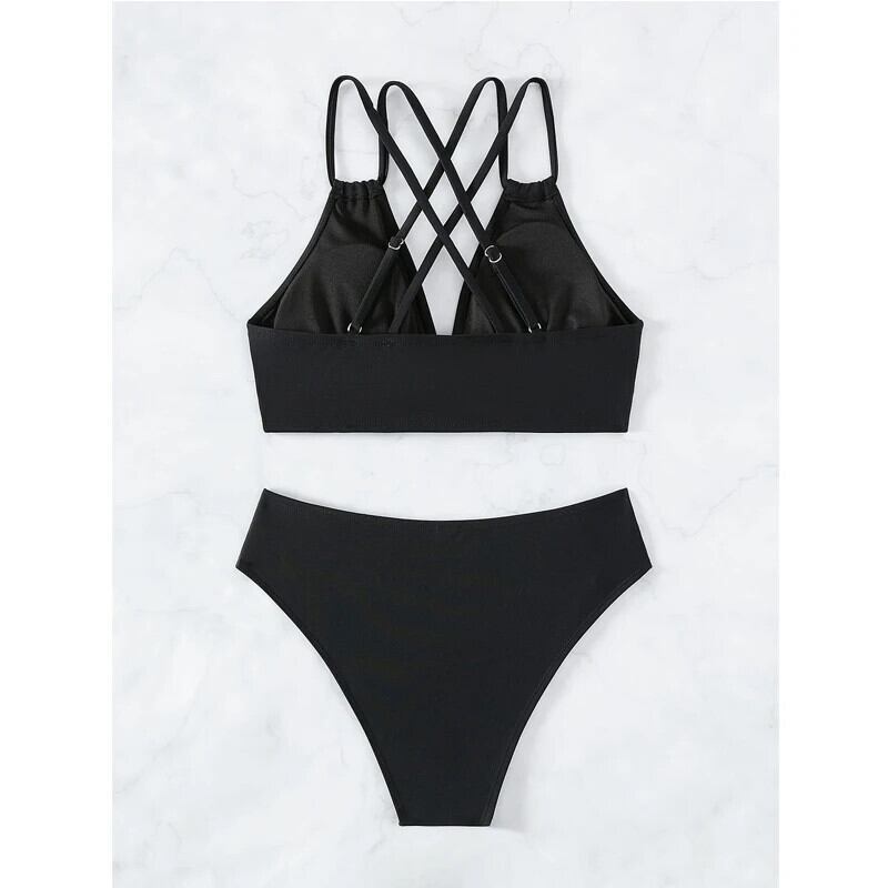 送料無料 2024 レディース水着、ソリッドカラーウエスト 2 ピースビキニセット、V ネックサスペンダー中空アウトバックレス水着、水着 Vネック AE33232335527325582387