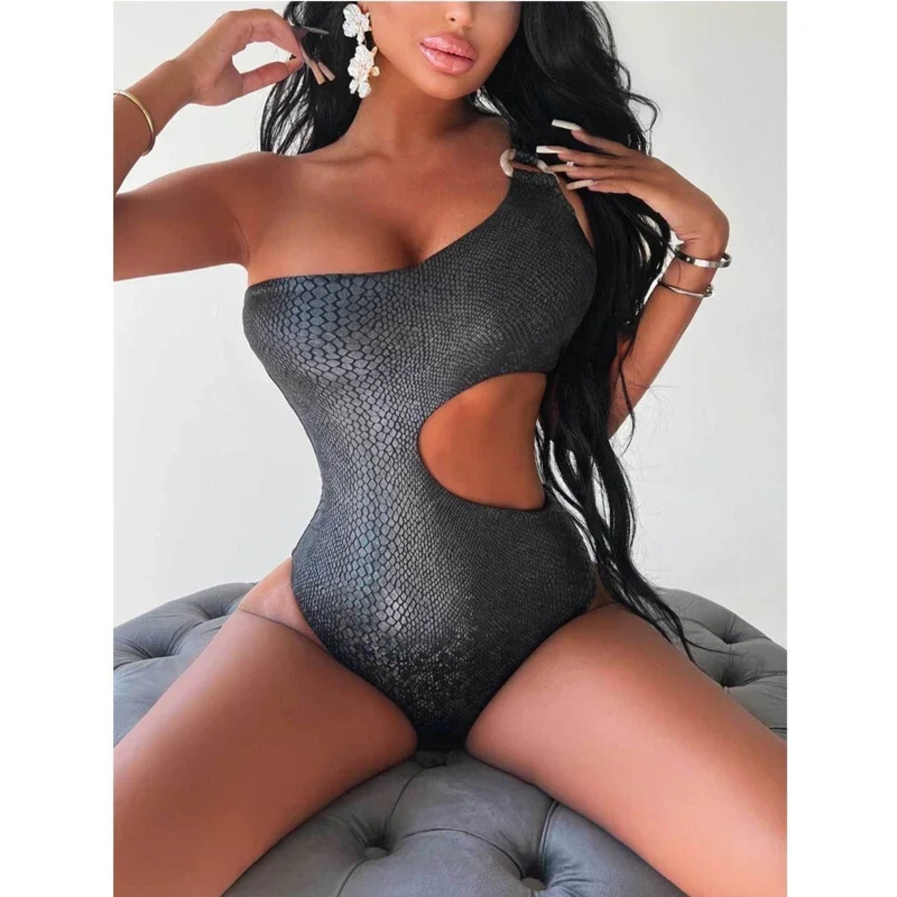 送料無料 2024 セクシーなワンショルダー水着女性中空アウトヘビプリントワンピース水着夏のビーチ水着背中の開いたモノキニ サマー 夏物 AE3323233554171376342