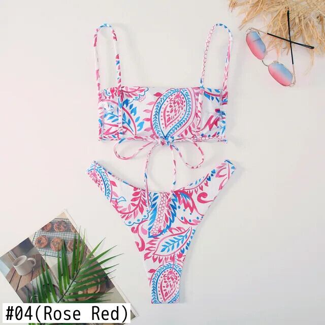 送料無料 プリントビキニセットツーピース水着女性 2024 バンドーサスペンダー水着夏のビーチ休暇水着 サマー 夏物 AE33232335545109222781