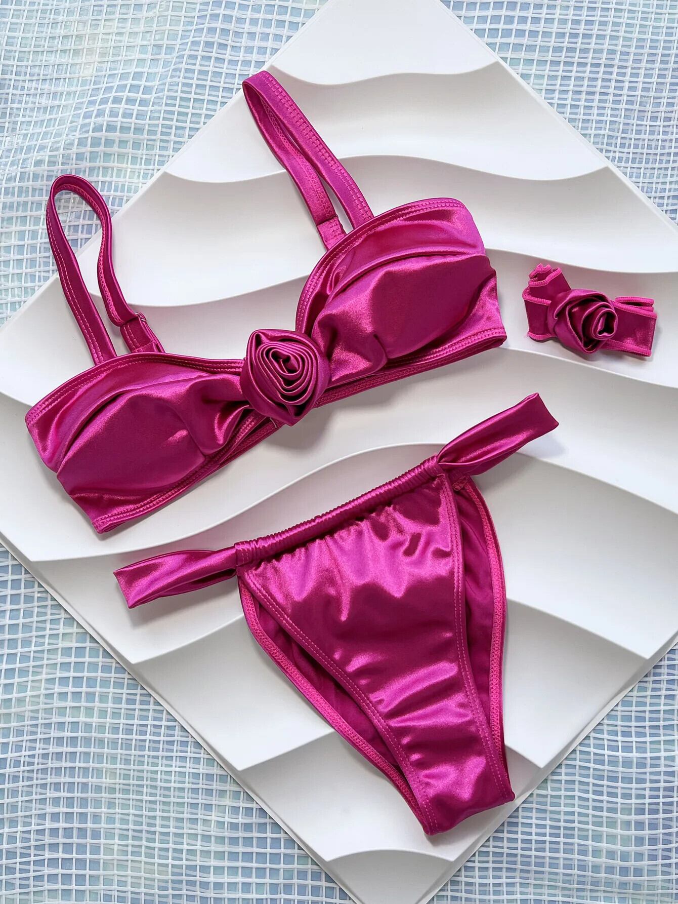 送料無料 2024 ソリッドカラーの光沢のあるビキニセット女性の卵赤光沢のある水着夏のビーチでの休暇の衣装水着水着 レッド サマー 夏物 AE3323233556399736570