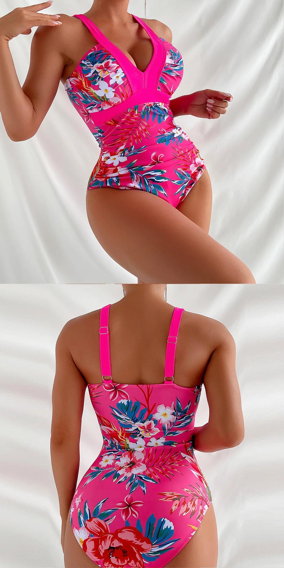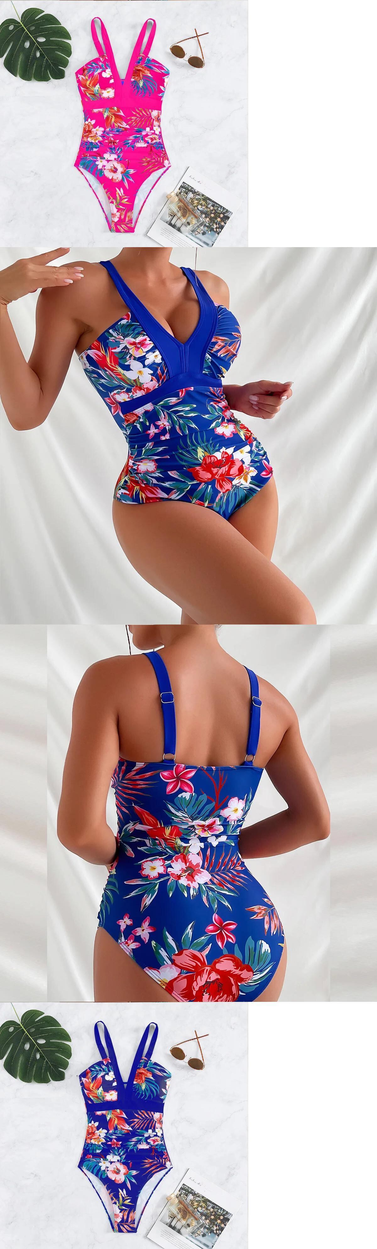 送料無料 花柄ビキニ女性 2024 V ネックワンピース水着セクシーなウエストスリムモノキニサスペンダー背中の開いた夏のビーチ水着 サマー 夏物 Vネック AE33232335596716496837