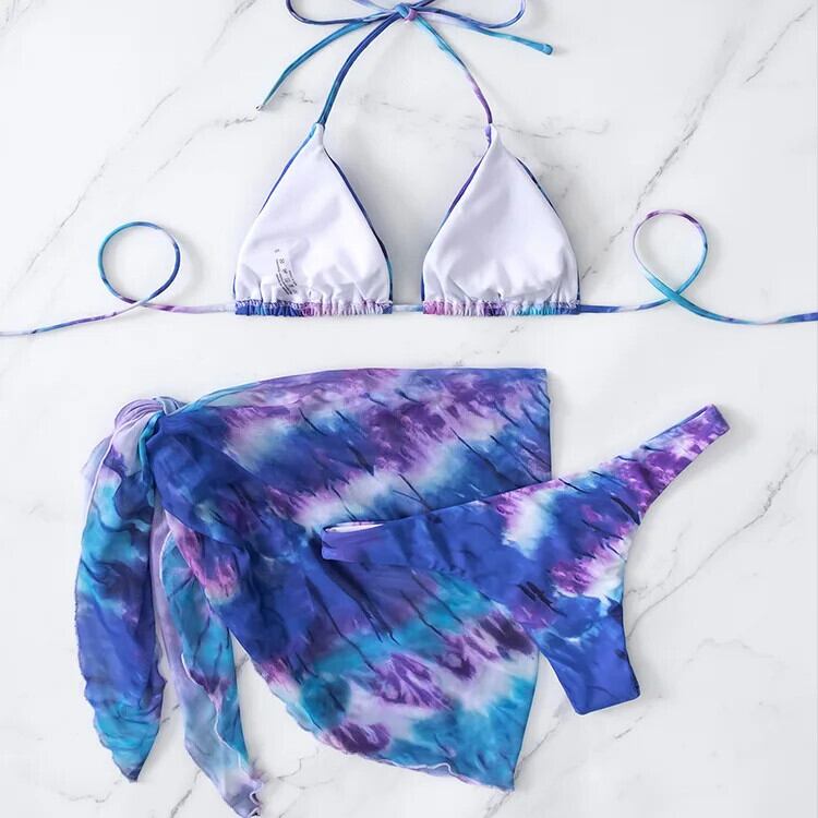 送料無料 セクシーなプリントビキニセット女性 2023 夏スリーピースチュールスカート水着三角バッグホルタービキニローウエスト背中の開いた水着 サマー 夏物 AE33232335534195243042