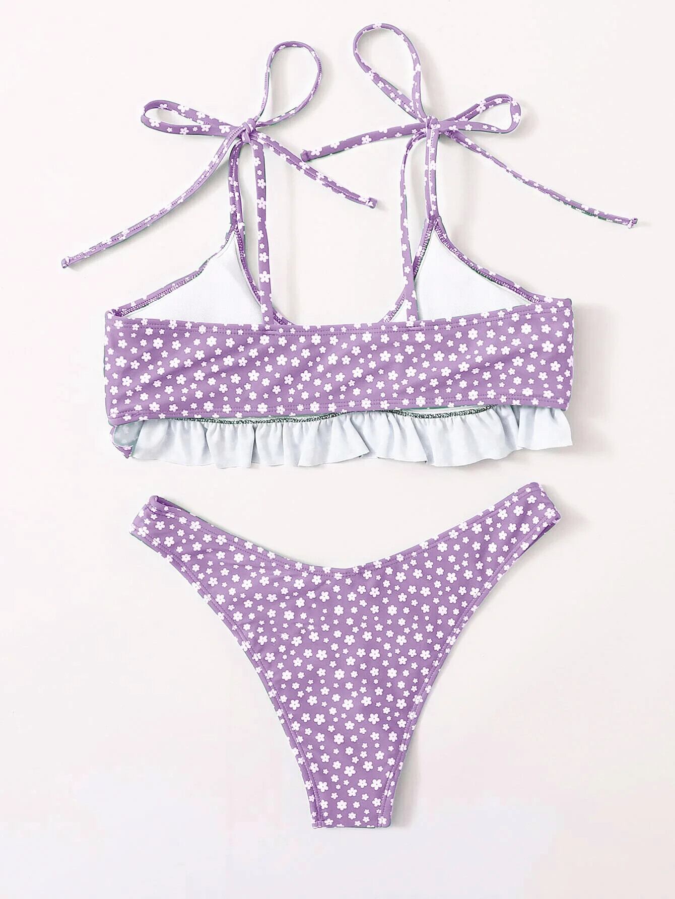 送料無料 2023 プリントビキニツーピース水着女性のセクシーなフリルサスペンダーレースアップ背中の開いたビーチ水着ウエスト水着 PXJY19 AE33232335552789985592