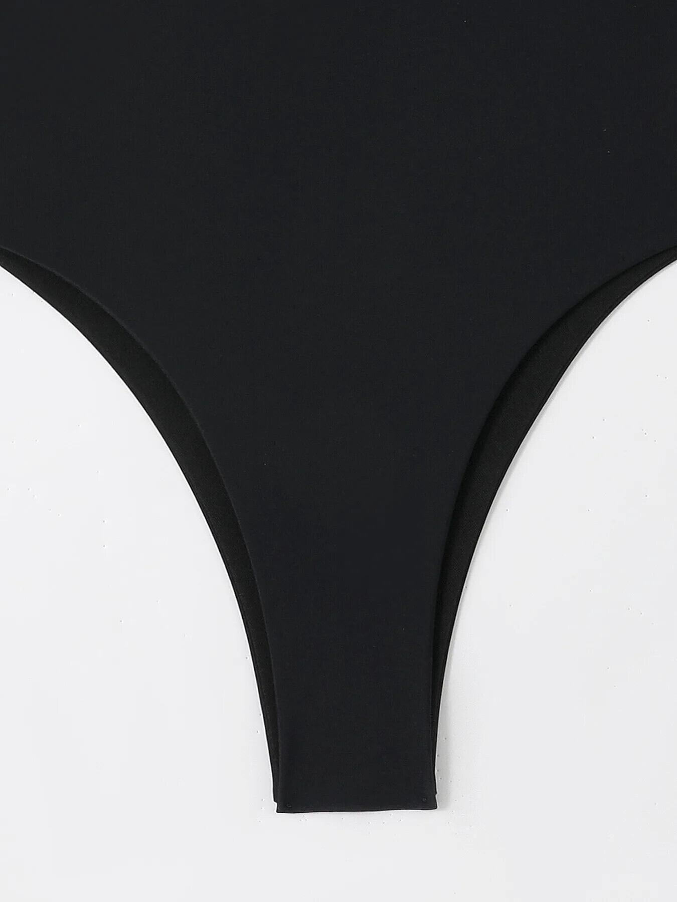 送料無料 ソリッドカラーワンピース水着女性 2023 黒のセクシーなシングルショルダービキニプッシュアップ水着サスペンダー背中の開いた夏のモノキニ ブラック サマー 夏物 AE33232335535805018314