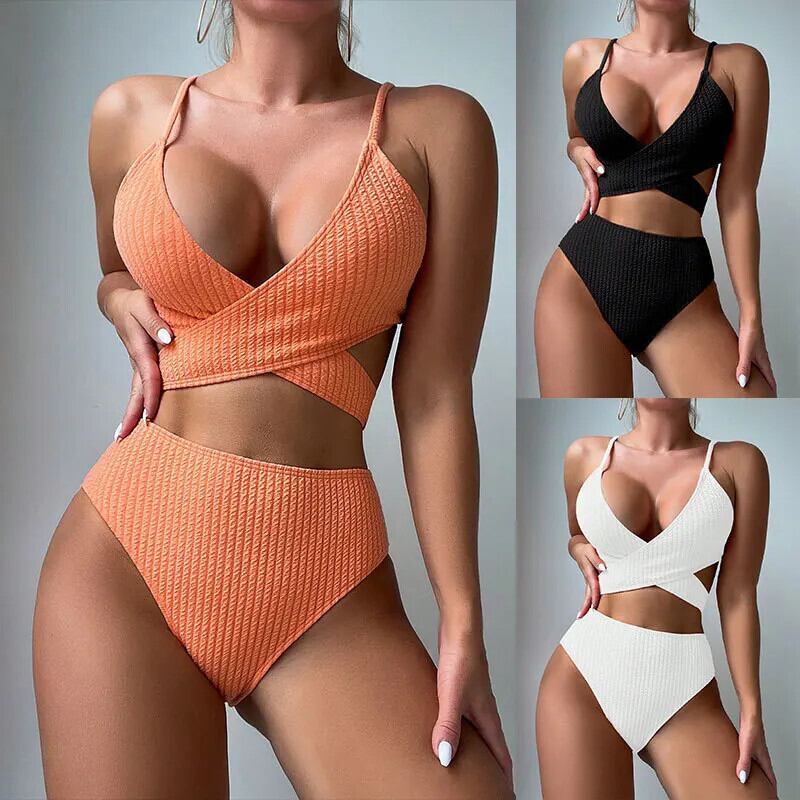 送料無料 ソリッドカラーウエストツーピース水着女性 2023 クロス V ネックサスペンダー背中の開いたビキニ水着夏のビーチ水着 サマー 夏物 Vネック AE33232335536623528265