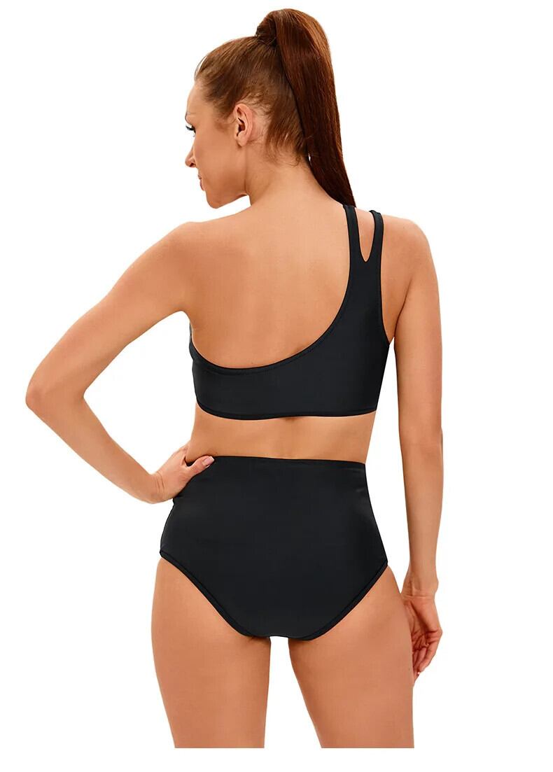 送料無料 黒メッシュスプライシング水着女性 2023 ウエスト 2 ピースビキニシングルショルダー水着夏の背中の開いたビーチ水着 ブラック サマー 夏物 AE33232335594807256990