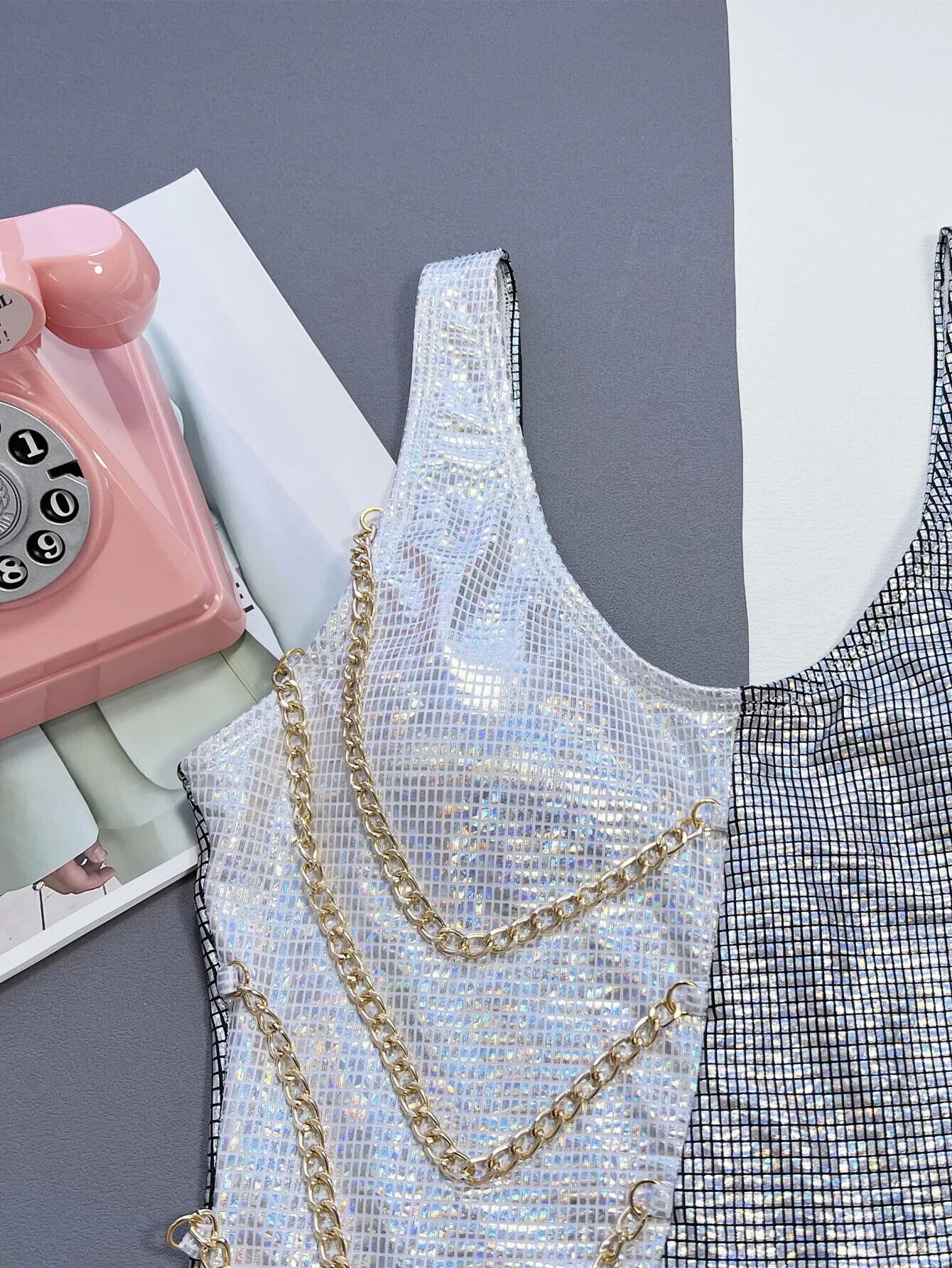 送料無料 204 チェーン光沢のあるワンピース水着女性、セクシーな銀色のパッチワークビキニ、サスペンダー背中の開いた夏のビーチモノキニ水着 サマー 夏物 シルバー AE33232335549981185840