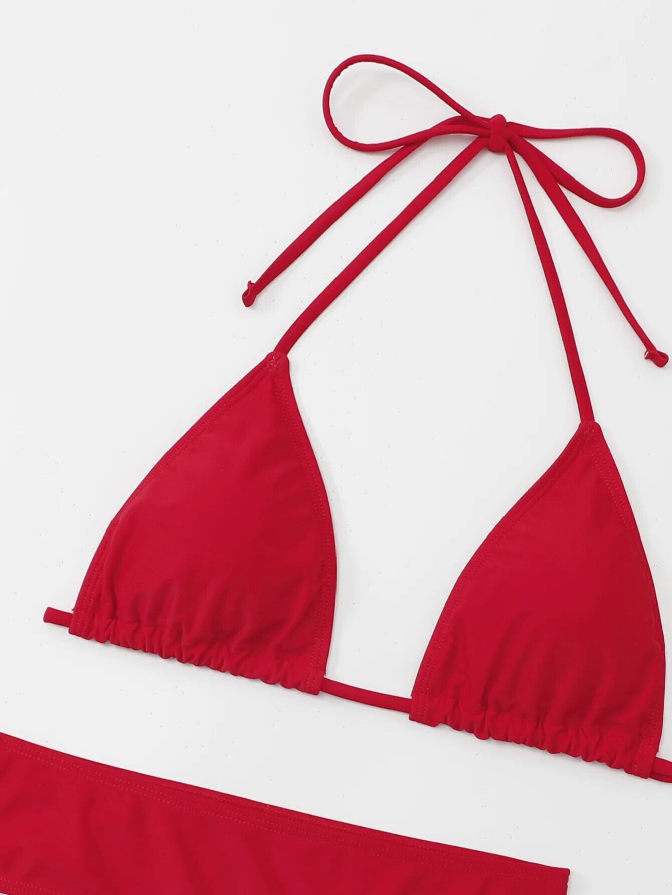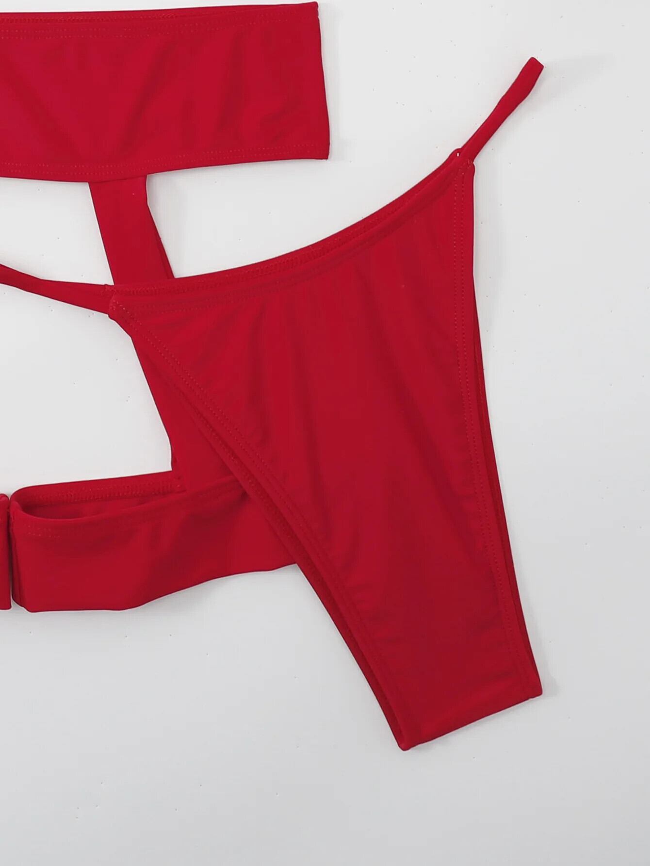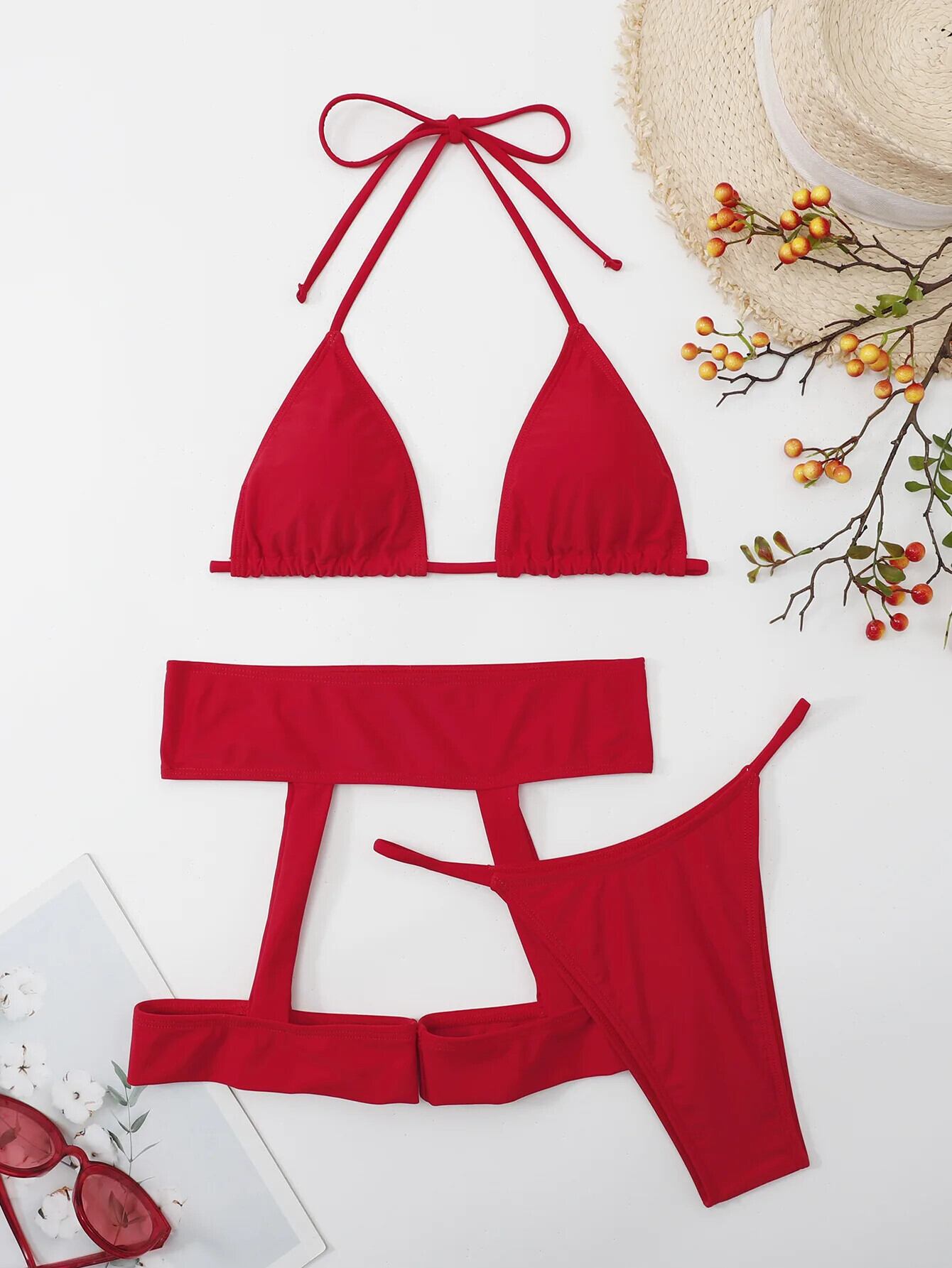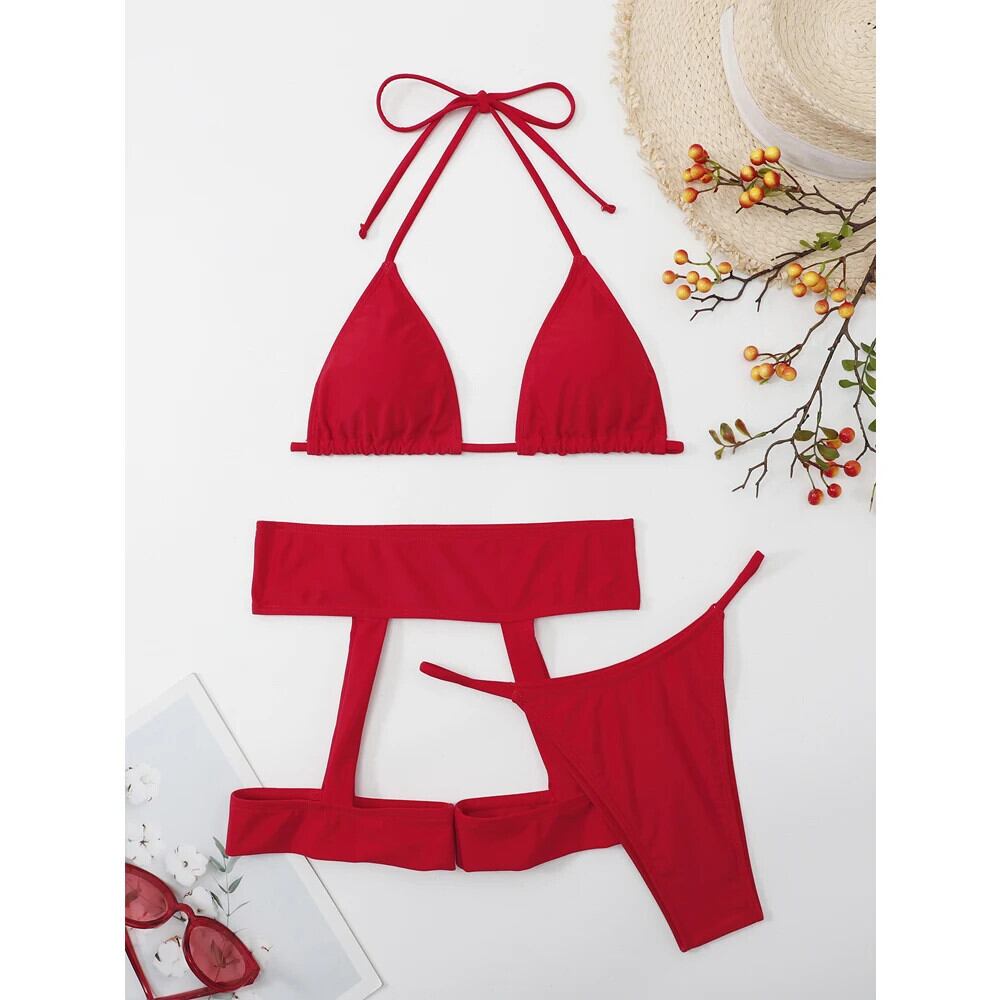 送料無料 ウエスト包帯 3 ピース水着女性 2023 中空アウト赤ビキニローウエスト Tバック背中の開いた水着夏のビーチウェア レッド サマー 夏物 AE33232335545454853303