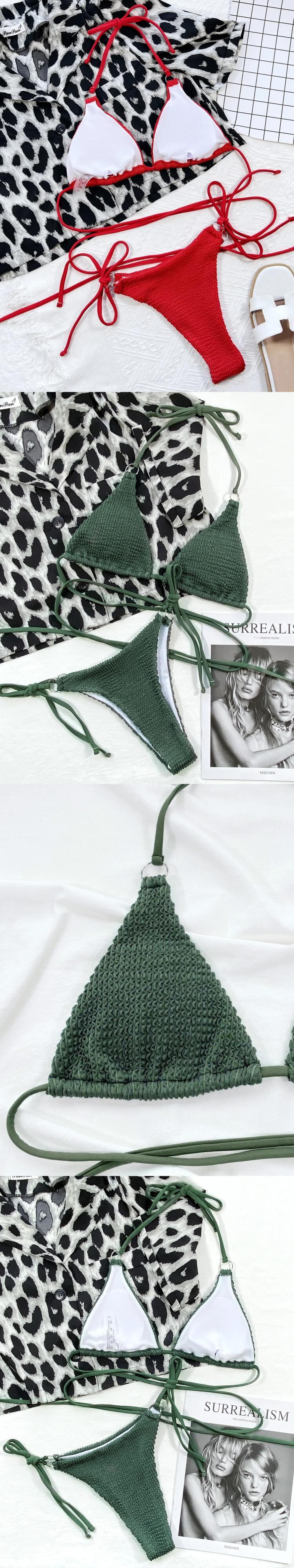 送料無料 ソリッドカラービキニ 2023 女性、2 ピース水着、クロス包帯レースアップマイクロストリング水着、夏ブラジリアン水着 Tバック サマー 夏物 AE33232335571287148002