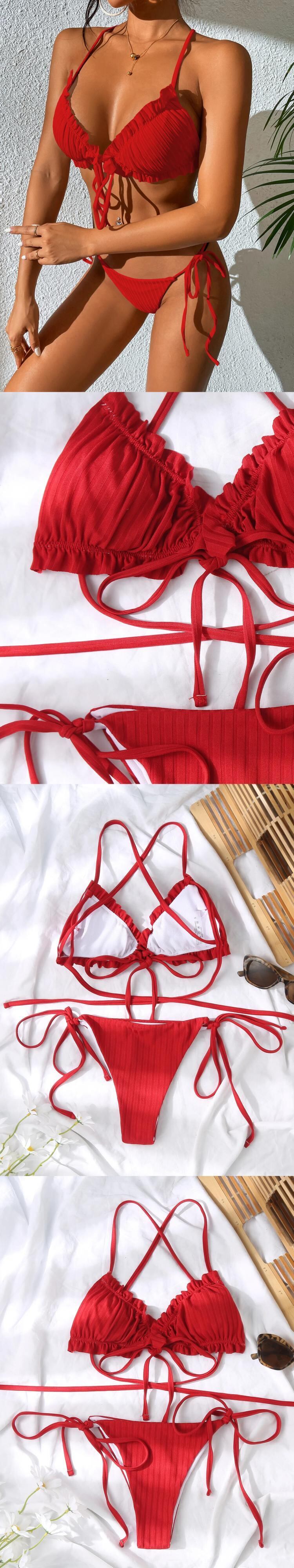 送料無料 フリル水着女性 2023 ソリッドカラーツーピースビキニプリーツ三角カップ巾着ブラジル水着水着 PXCC217 AE33232335556120313779