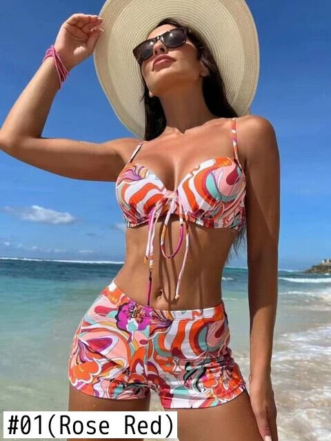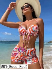 送料無料 水着女性 2023 プリントウエストタンキニツーピースビキニセクシーな V ネックサスペンダー水着レースアップ夏の水着 サマー 夏物 Vネック AE33232335567154378663