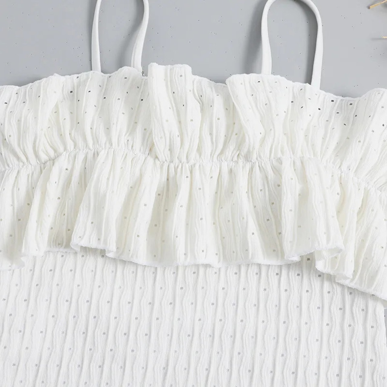 送料無料 女性水着 2023 ソリッドホワイトワンピース水着フリル特殊生地ビキニスリムサスペンダーモノキニ水着 SYF9063 ソリッドカラー AE33232335556947883486