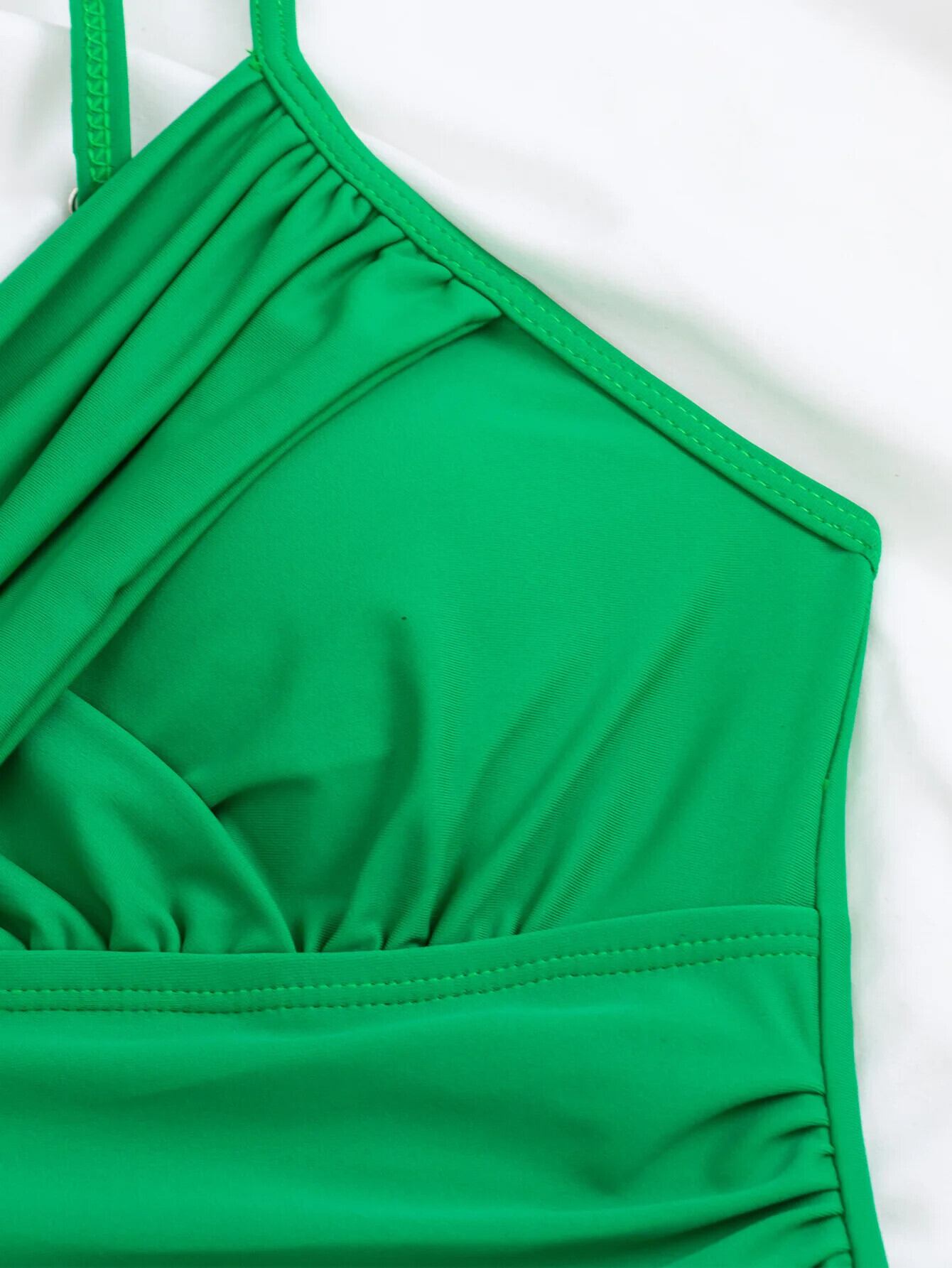 送料無料 グリーンリンクルワンピース水着女性 2023 セクシーなクロス V ネックビキニ夏サスペンダー背中の開いた水着ビーチ Swimwsuit サマー 夏物 Vネック AE3323233558624054640