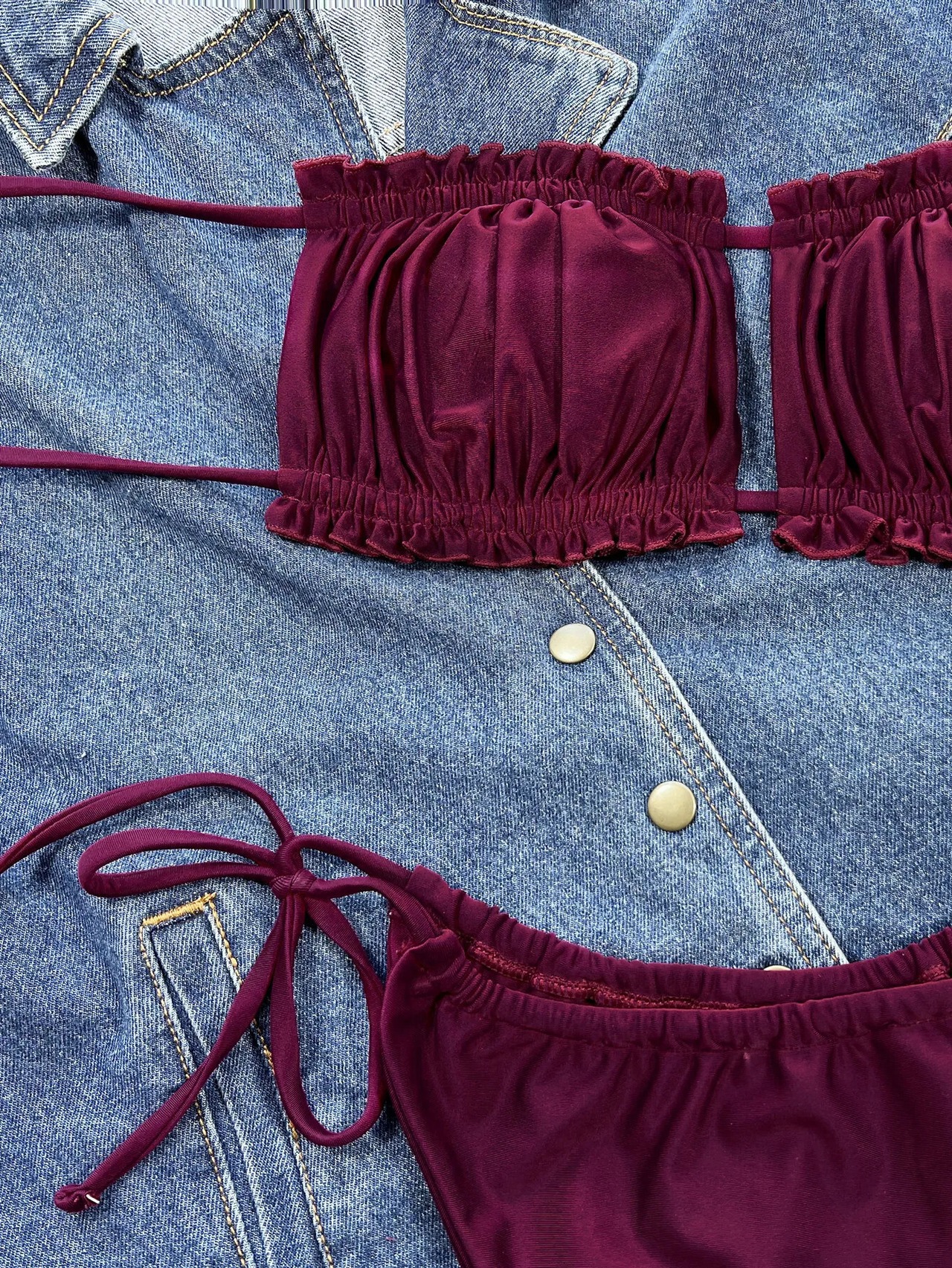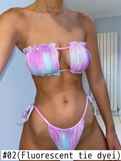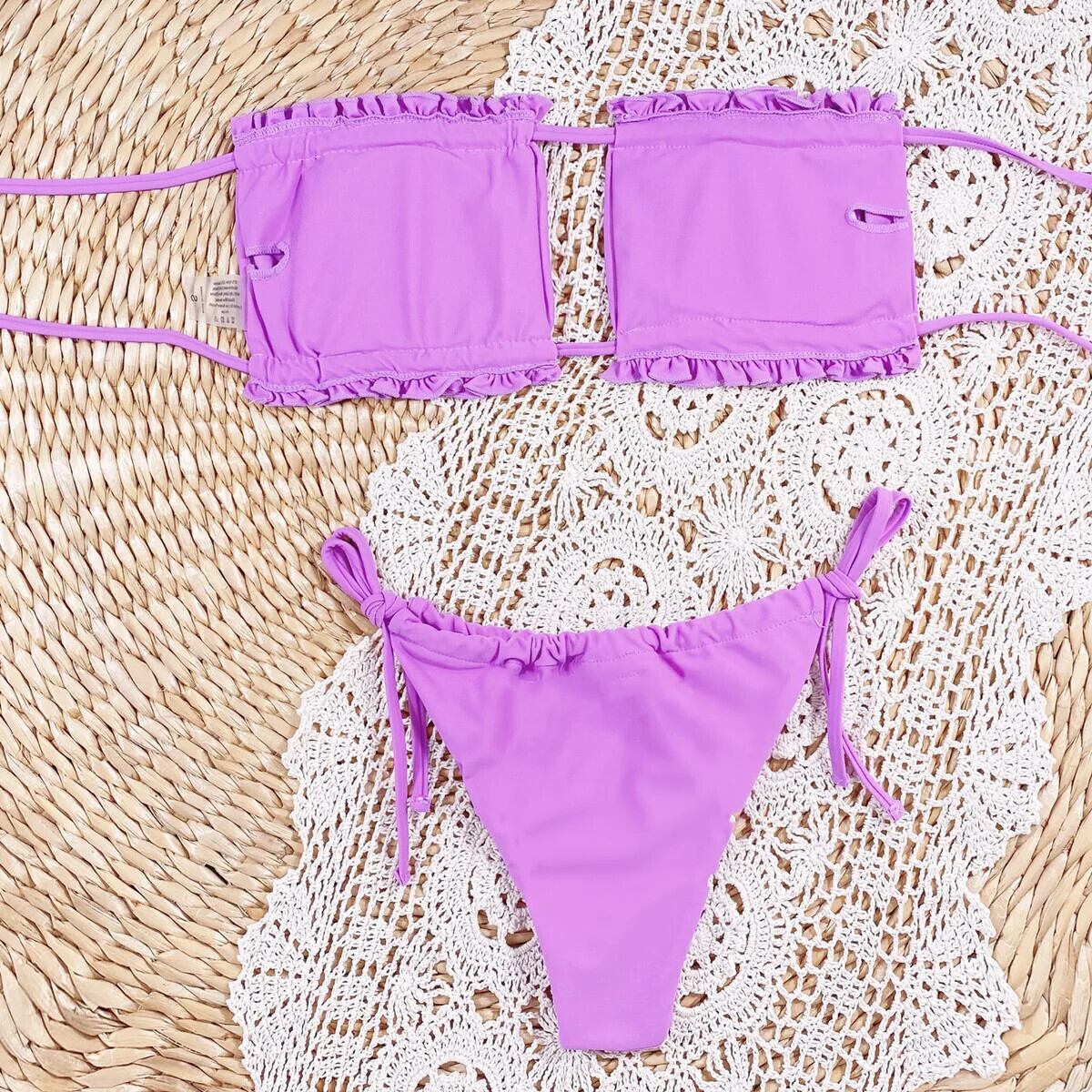 送料無料 パープルビキニセクシーなフリル中空アウト女性 2 ピース水着オフショルダーウエスト Tバック水着ビーチ水着 XMQC1977 AE33232335576815768831