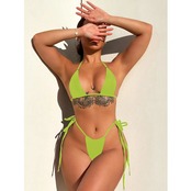 送料無料 セクシーなマイクロ水着女性 2023 ソリッドカラー 2 ピースビキニローウエストレースアップ水着ビーチ水着模造革生地 レザー AE33232335590803578169