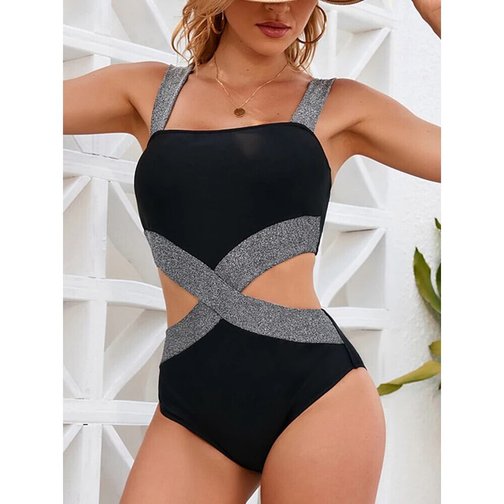 送料無料 2023 スプライスビキニワンピース水着女性のセクシーなサスペンダー包帯背中の開いた水着ショーウエストボディスーツ夏の水着 サマー 夏物 AE33232335580697391602