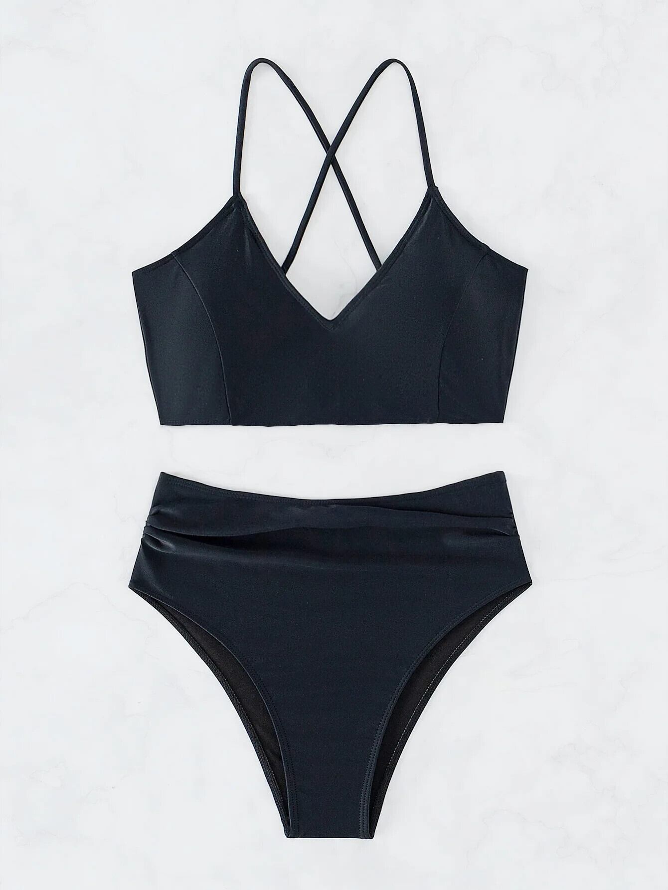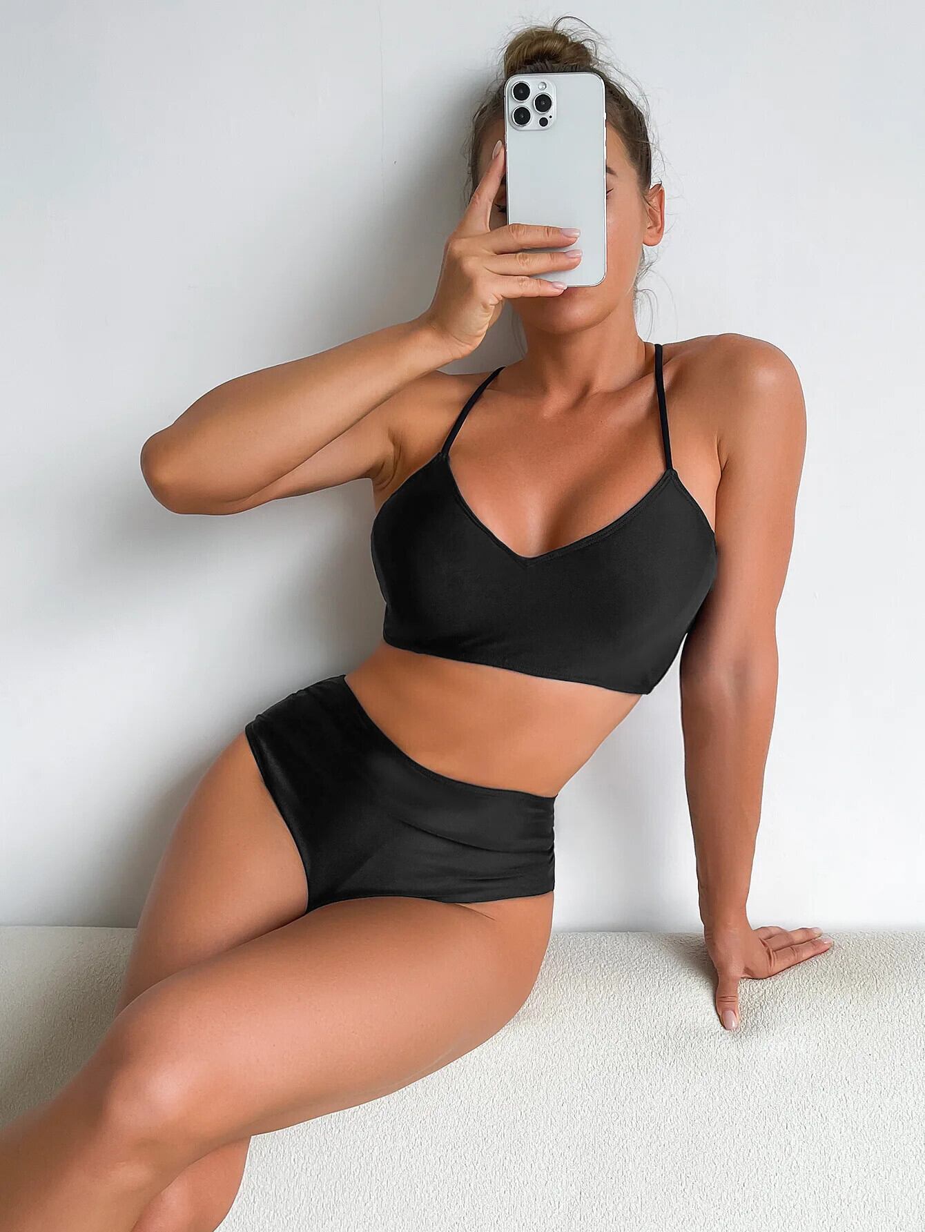 送料無料 ウエストスプリット水着 2023 女性黒ツーピースビキニセクシーな V ネックサスペンダー背中の開いた夏のビーチ水着 Biquini ブラック サマー 夏物 Vネック AE33232335520308786534