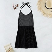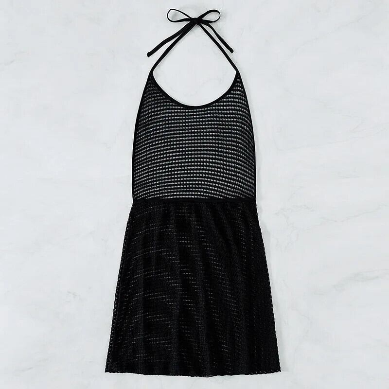 送料無料 黒ビーチカバーアップドレス女性 2023 夏海辺メッシュ太陽保護カーディガンルーズレースアップビーチウェアスリップドレス OLDL088 ブラック サマー 夏物 AE3323233555920940181
