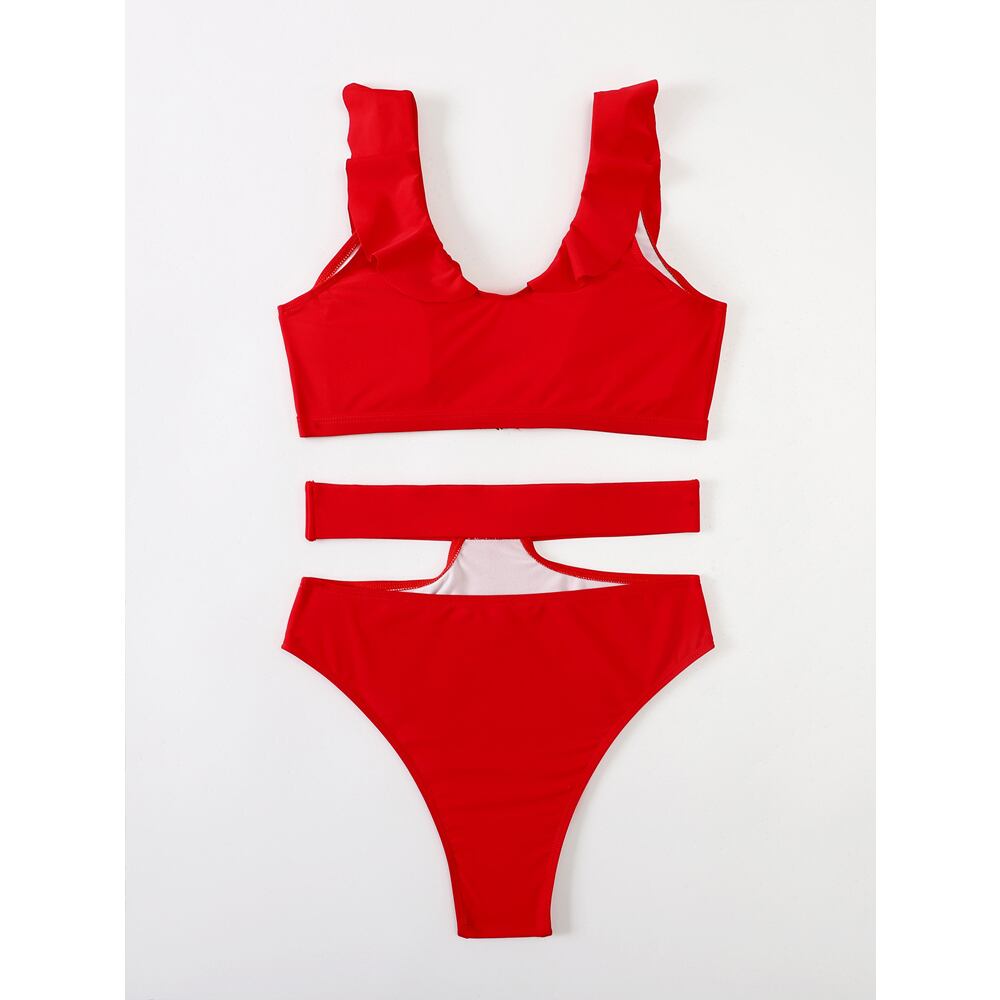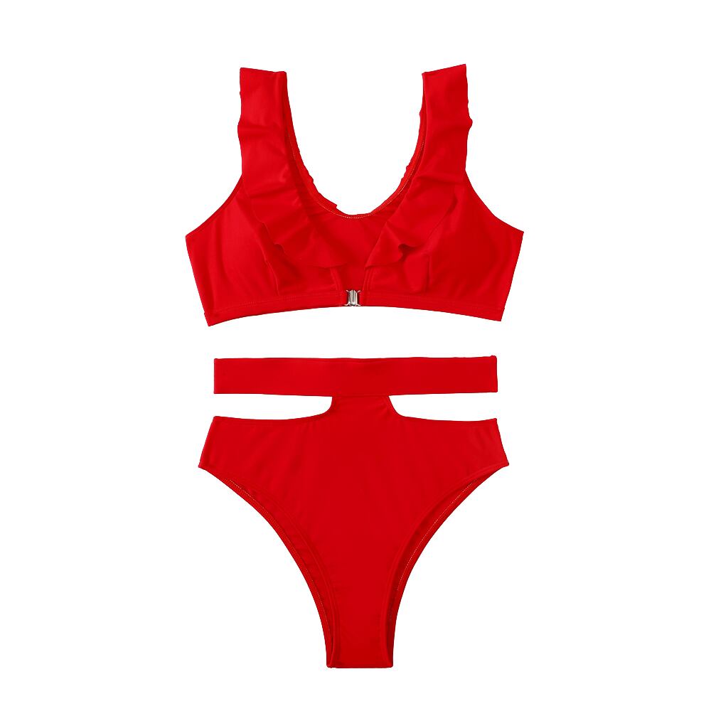 送料無料 レッドウエスト 2 ピース水着女性 2023 夏フリル V ネックビキニサスペンダー背中の開いた水着休暇水着 サマー 夏物 Vネック AE33232335557198359112