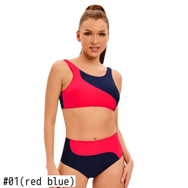 送料無料 赤青パッチワーク水着女性 2023 ウエスト 2 ピースビキニ U ネックサスペンダー背中の開いた水着水着ビーチ水着 レッド ブルー AE33232335546690708947
