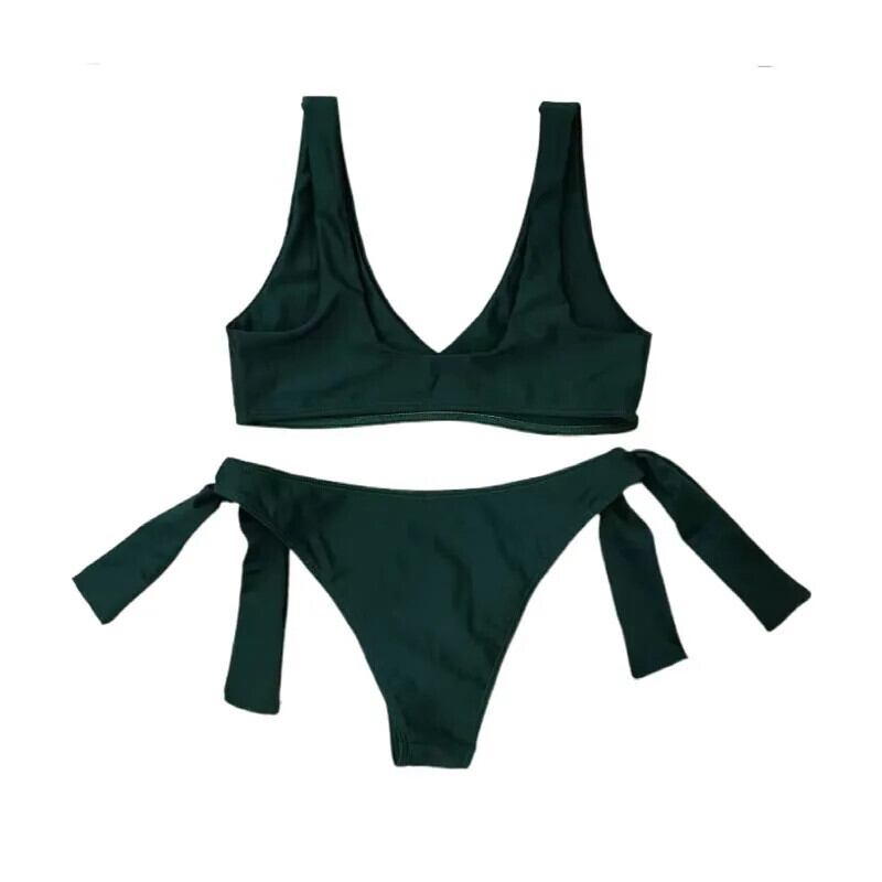 送料無料 2023 ソリッドカラービキニセットツーピース水着女性サスペンダー V ネックビーチ水着ウエストレースアップ水着 YL2023022 Vネック AE33232335550357036955