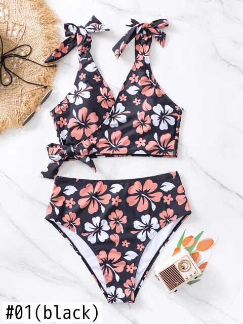 送料無料 フラワープリント水着女性 2023 オレンジウエストツーピースビキニセット V ネックサスペンダー背中の開いたビーチ水着 PXJY195 Vネック フラワーデザイン AE33232335512742676513