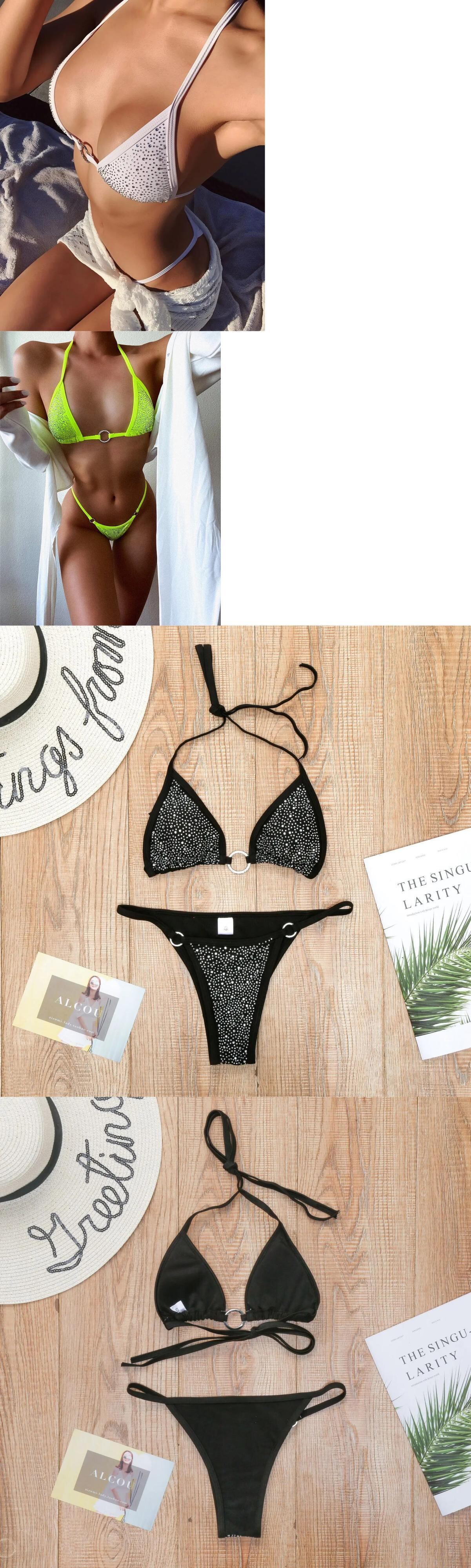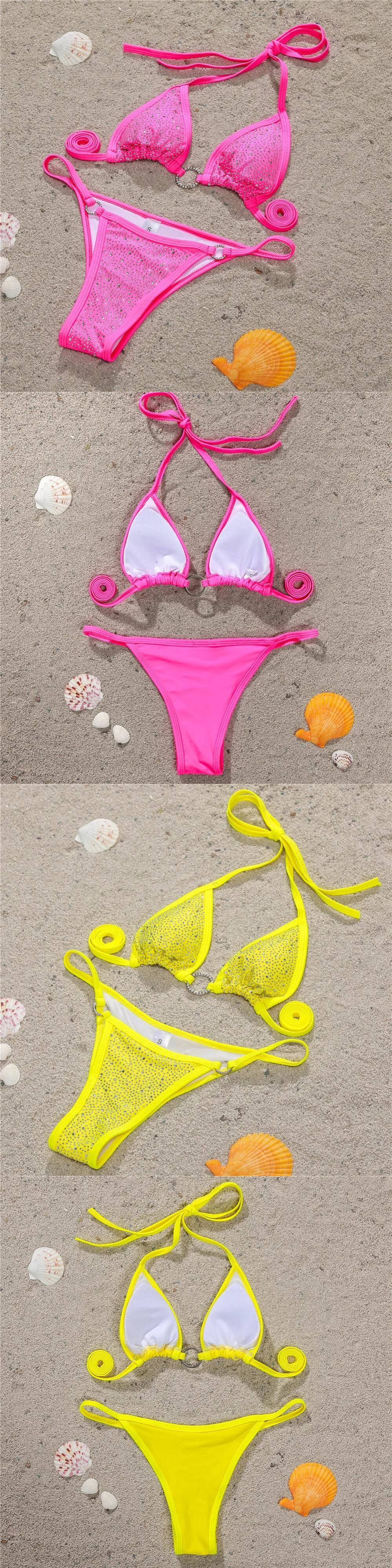 送料無料 ダイヤモンドインレイビキニ 2023 光沢のあるツーピース水着女性三角カップサスペンダー背中の開いたブラジルビーチ水着 Tバックタンキニ AE33232335519502184192