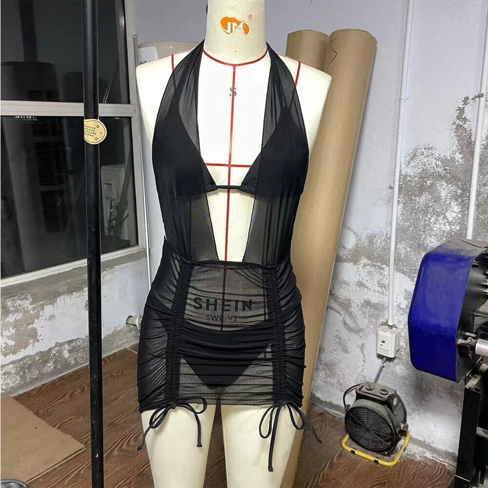 送料無料 ソリッドカラー水着 2023 女性 3 枚チュールスカート水着セクシーなウエスト中空アウト水着背中の開いたビーチウェア AE33232335594414540242