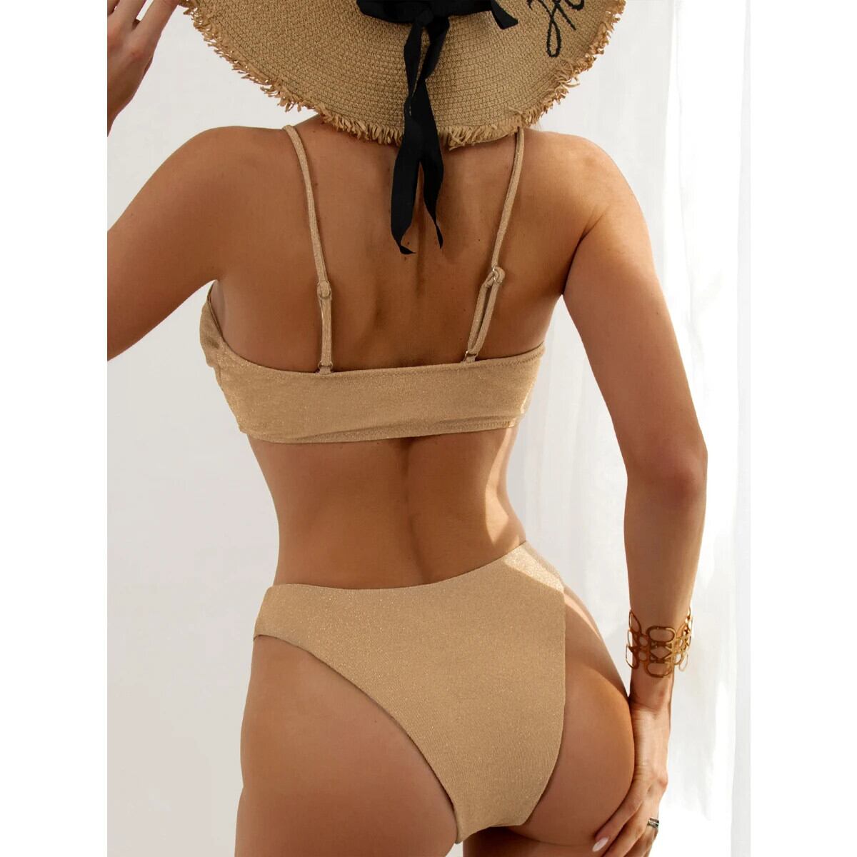 送料無料 ソリッドカラー水着女性 2023 不規則な中空ツーピースビキニ巾着サスペンダー水着ウエスト水着 AE33232335557786427242