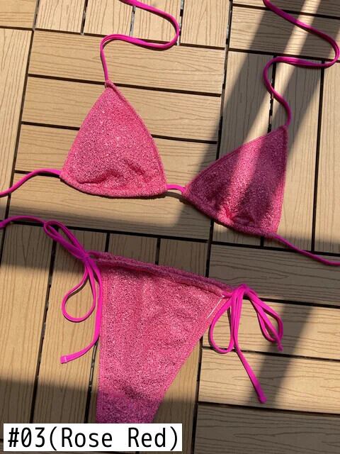 送料無料 光沢のあるビキニ 2023 2 ピース水着女性のセクシーな三角カップ V ネック水着ローウエスト Tバック巾着ビーチビキニ LG76987 Vネック AE33232335531034505240