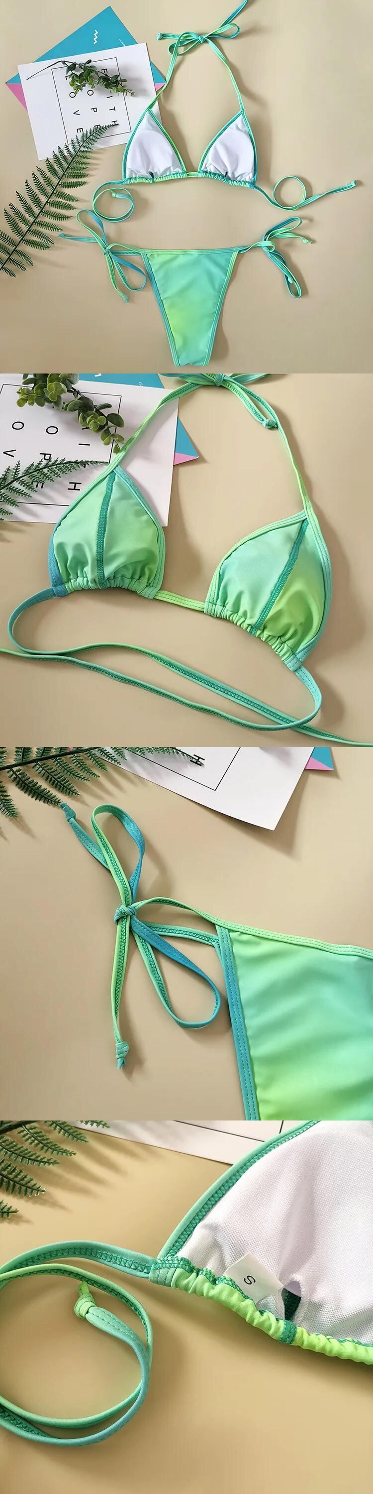 送料無料 2024 グラデーション水着女性、ネオンカラーハロー染色 2 ピースビキニ、セクシーな三角形サスペンダー背中の開いたローウエスト Tバック水着 AE33232335510838260352