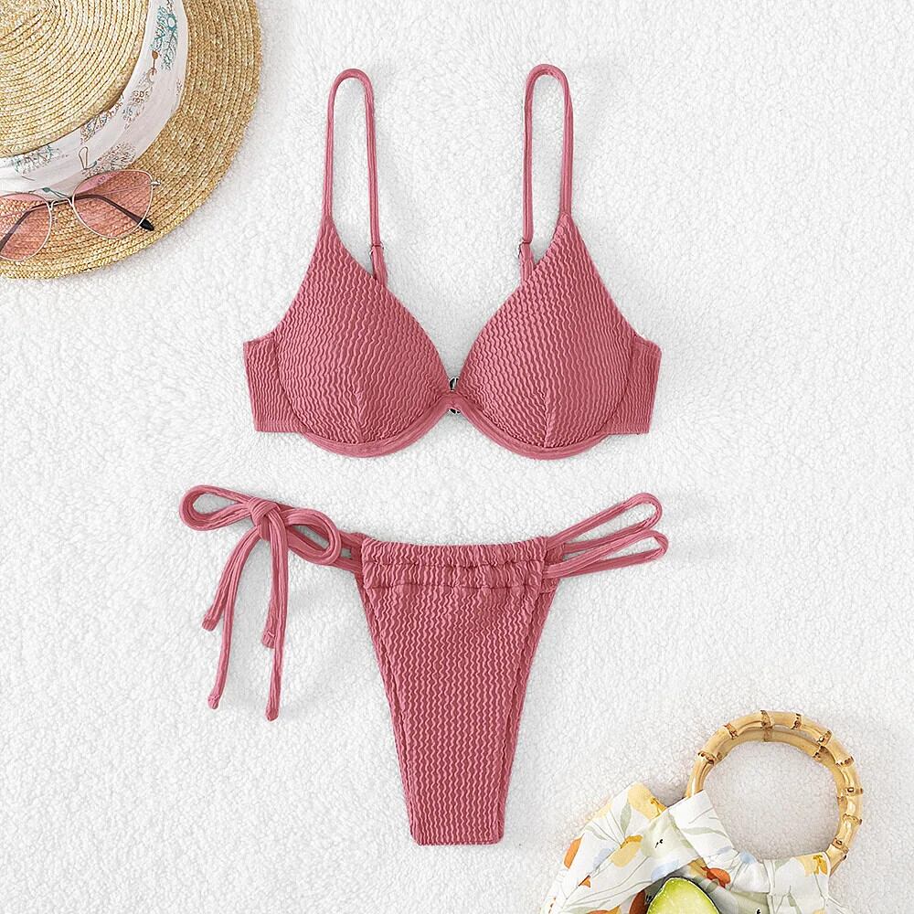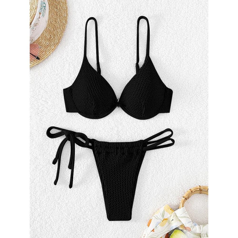 送料無料 ソリッドカラー 2 ピースアンダー水着女性 2023 リブ V ネックプッシュアップビキニローウエスト Tバック水着ビーチ水着 Vネック AE33232335553193701974