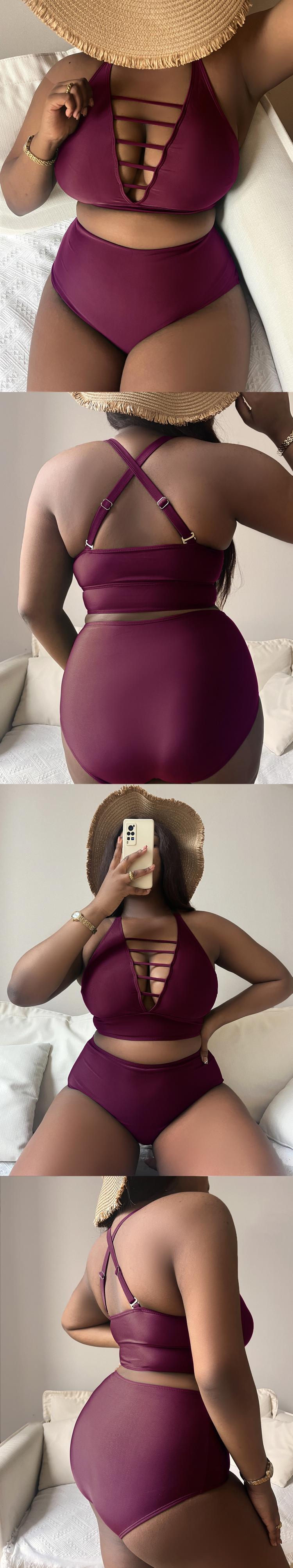 送料無料 オーバーサイズソリッドカラー水着セクシーな V ネック包帯中空アウト水着女性 2024 クロス包帯ウエスト水着 XXXXL Vネック AE33232335566445909835
