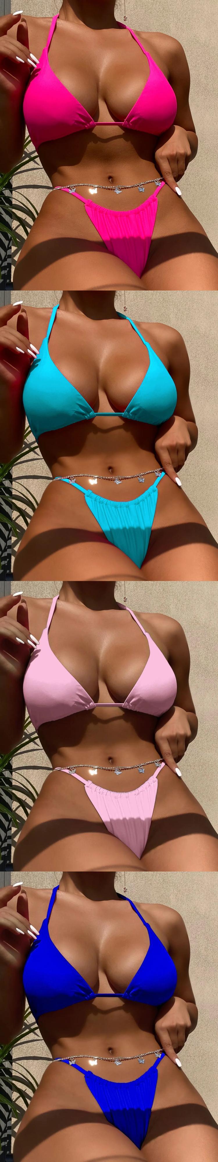送料無料 2024 セクシーなマイクロビキニ蝶金属チェーンビキニセット女性ソリッドオレンジプッシュアップ Tバック水着ビーチ水着水着 ソリッドカラー AE33232335540975987637