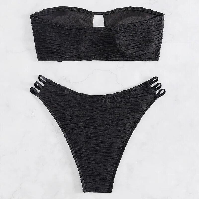 送料無料 2024 夏ブラックツーピースレディース水着、セクシーなウエストくり抜きストラップレスビキニ、オフショルダーバックレスビーチ水着 サマー 夏物 AE33232335532065251712