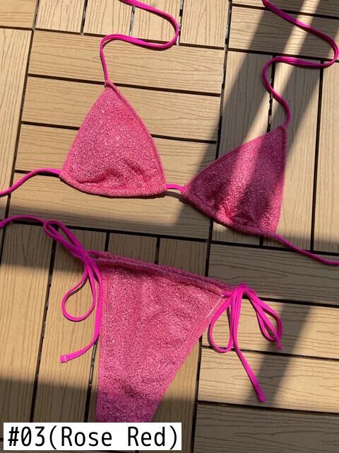 送料無料 光沢のあるビキニ 2024 夏 2 ピース水着女性のセクシーな三角カップ V ネック水着ローウエスト Tバック巾着ビーチビキニ サマー 夏物 Vネック AE33232335521369625891