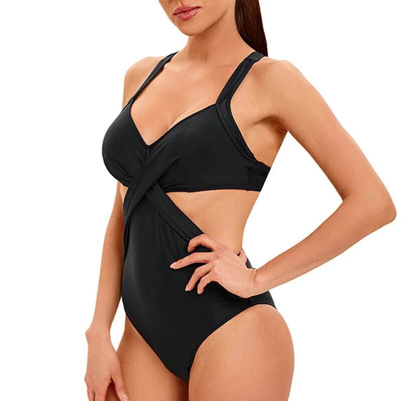 送料無料 ソリッドカラーワンピースビキニ女性、セクシーなクロスサスペンダー中空アウトバックレス水着、2024夏のビーチ水着、水着 サマー 夏物 AE33232335571984730706