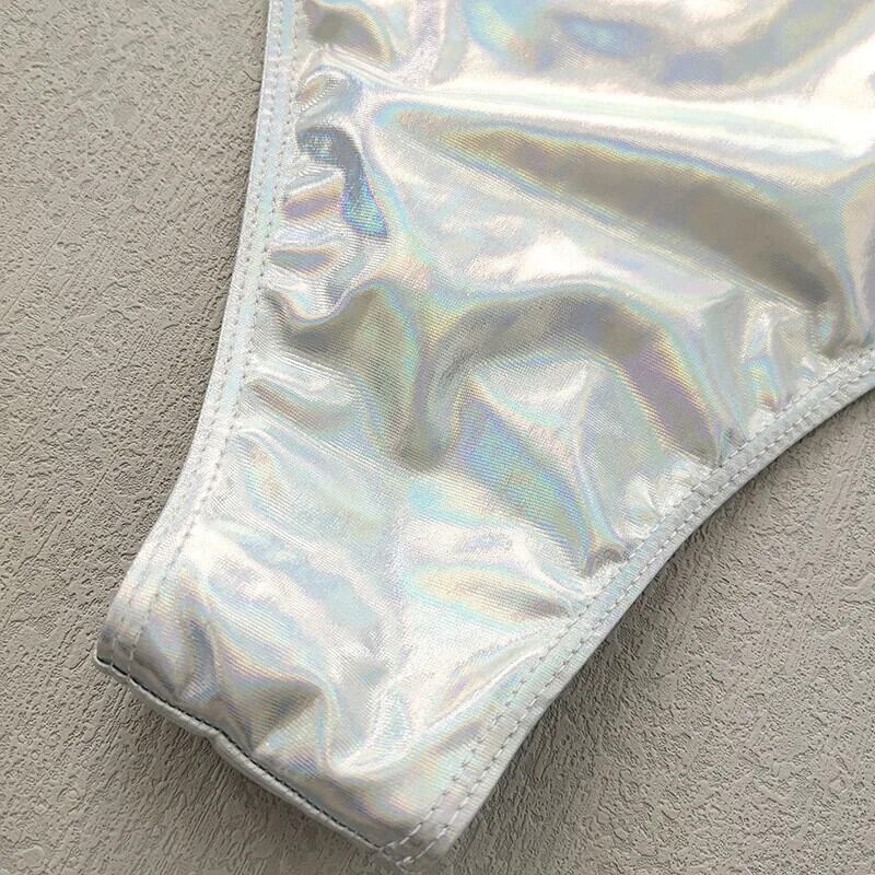 送料無料 シルバー光沢のあるビキニクロス包帯ワンピース水着女性 2023 中空アウトサスペンダー背中の開いたビーチモノキニ水着 銀 AE33232335573451949005
