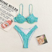 送料無料 水着女性 2023 チェックプリント 2 ピースビキニスチールブラケットセクシーな V ネック背中の開いたビーチ水着夏の水着 XYLS7852 サマー 夏物 Vネック AE33232335512225810284