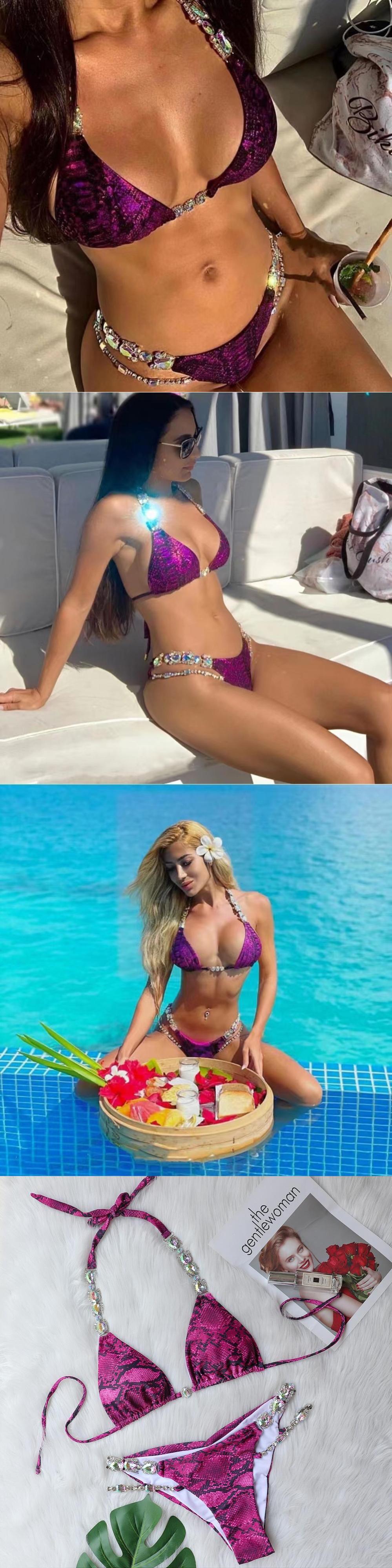 送料無料 セクシーなホルター光沢のあるダイヤモンドビキニ女性水着水着ツーピースビキニセットブラジル水着水泳ビーチウェア AE88976620301095788
