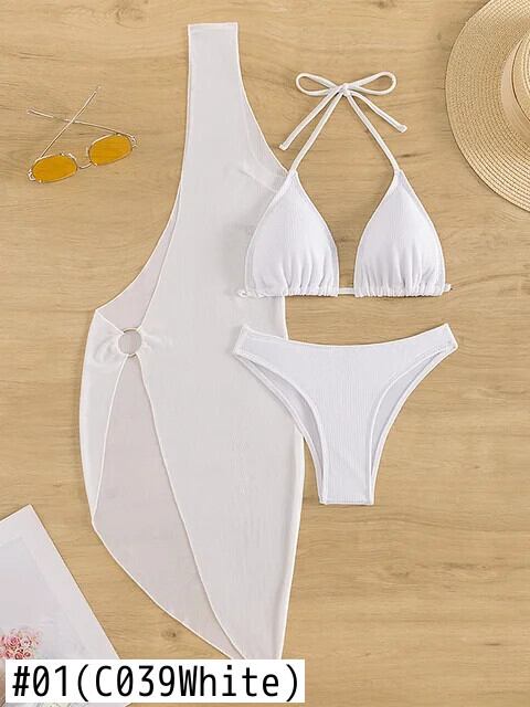 送料無料 セクシーなビーチカバーアップホルターリブビキニ女性水着水着 3 ピースビキニセット入浴者水着水泳 AE88976629469689539