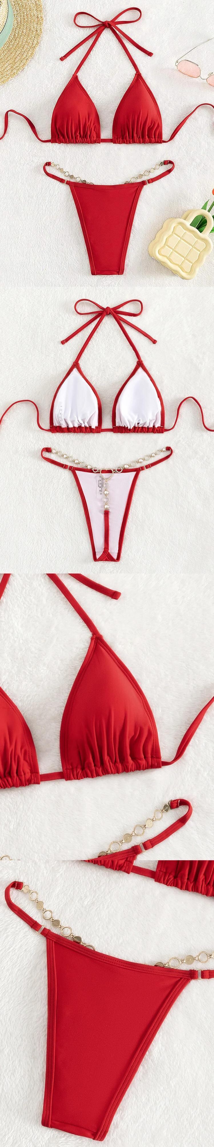 送料無料 2024 ホルターミニマイクロストリングパールダイヤモンドビキニ水着女性 Tバック水着ツーピースビキニセット水着水泳 真珠 AE88976622040981416