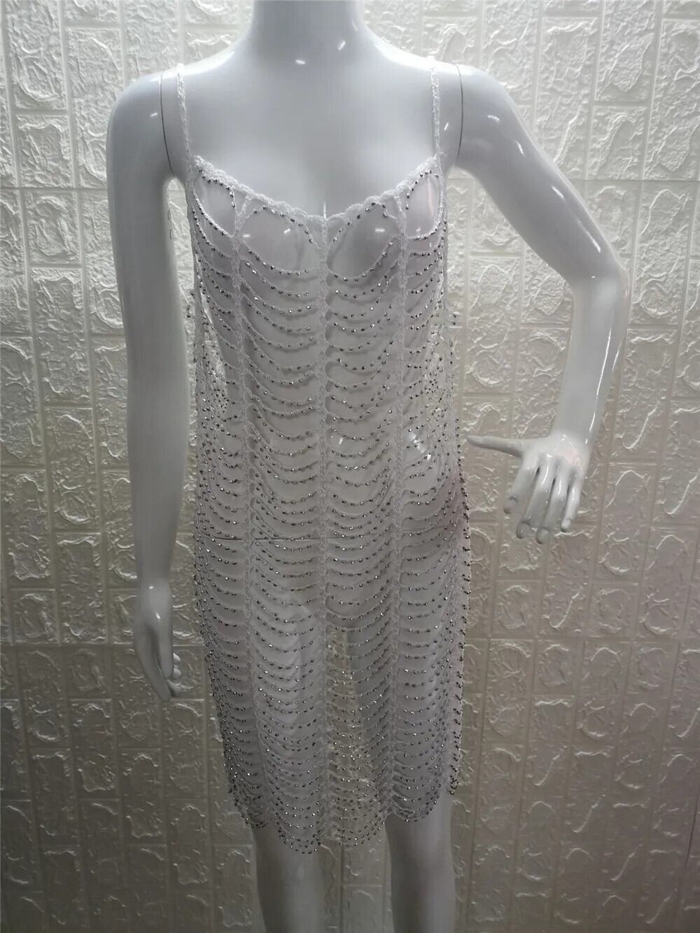 送料無料 高級ブリンブリンダイヤモンドラインストーン中空ロングチュニックビーチカバーアップ女性カバーアップビーチドレスビーチウェアビーチウェア AE88976650052247242