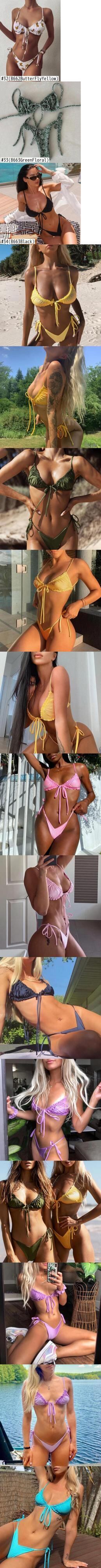 送料無料 セクシーなプリントフリルフリルビキニ女性 Tバック水着水着 2 枚ビキニセットマイクロストリング水着水泳 AE88976663137251229