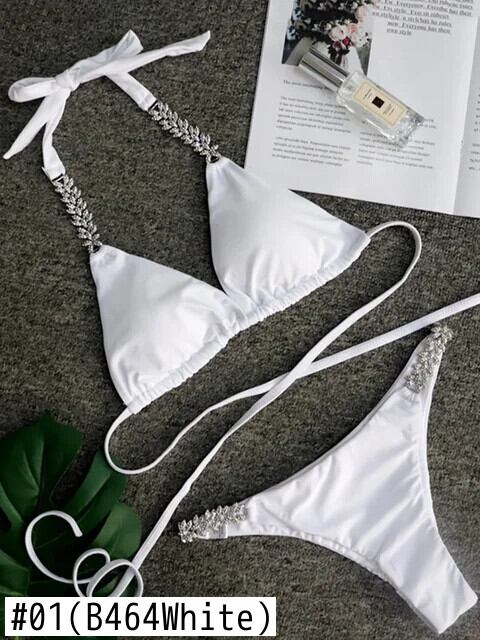送料無料 セクシーなクリスタルダイヤモンドビキニ 2024 女性クロス包帯水着水着二枚ビキニセットホルター水着水泳 AE88976671426311778