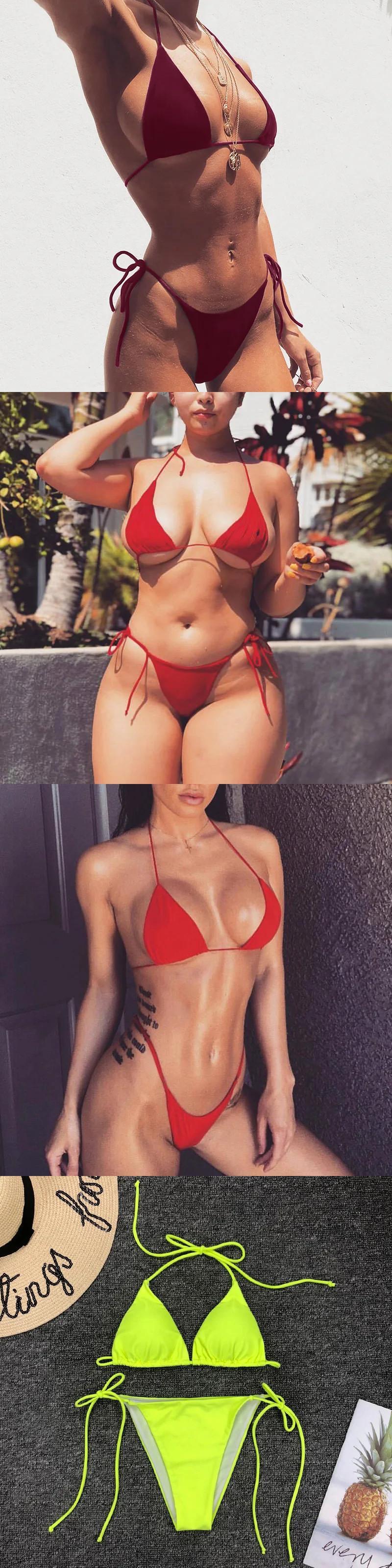 送料無料 エクストリームミニマイクロストリングビキニ 2024 女性ホルター水着水着 2 枚ビキニセット水着水泳ビーチウェア AE8897665084415443