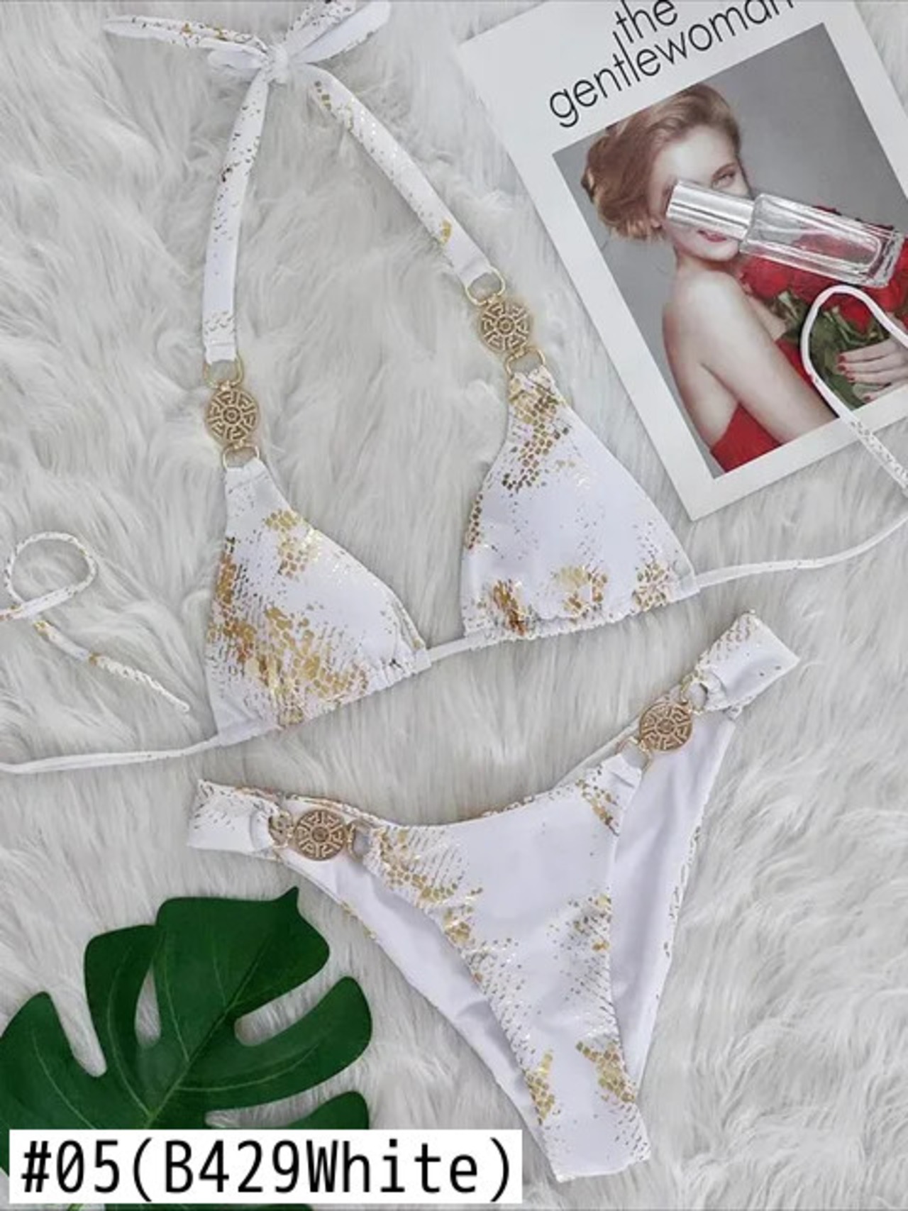 送料無料 スネークプリントホルターダイヤモンドビキニ 2024 女性水着水着ツーピースビキニセットカット水着水泳ビーチウェア AE88976615646528978